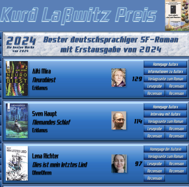 Wir sind ganz aus dem Häuschen! Aiki Miras "Neurobiest" konnte sich durchsetzen und gewinnt den Kurt Laßwitz Preis 2024 in der Kategorie "Bester deutschsprachiger SF-Roman".